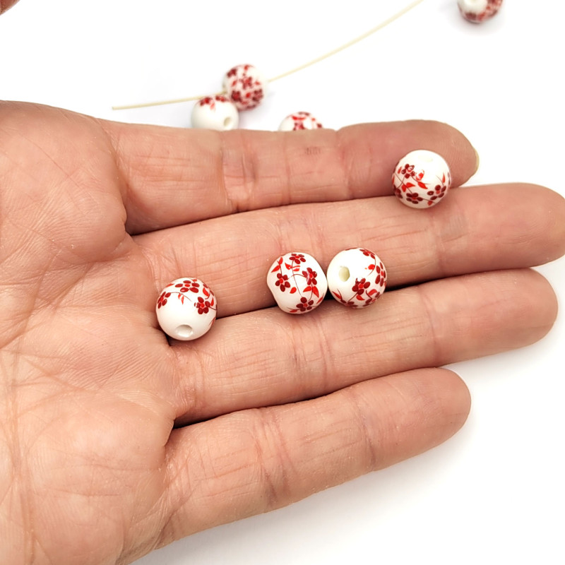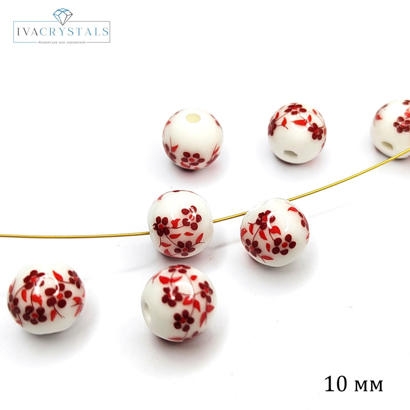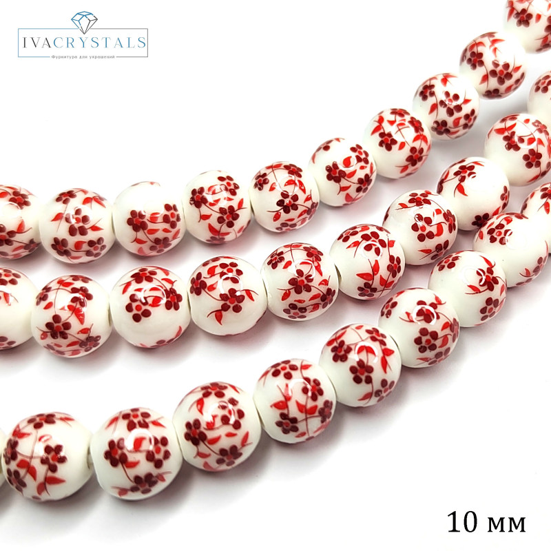 Купить Бусины керамические 10 мм с красным узором Гжель вы можете в компании iva_crystals, оформив заказ в интернет магазине, или