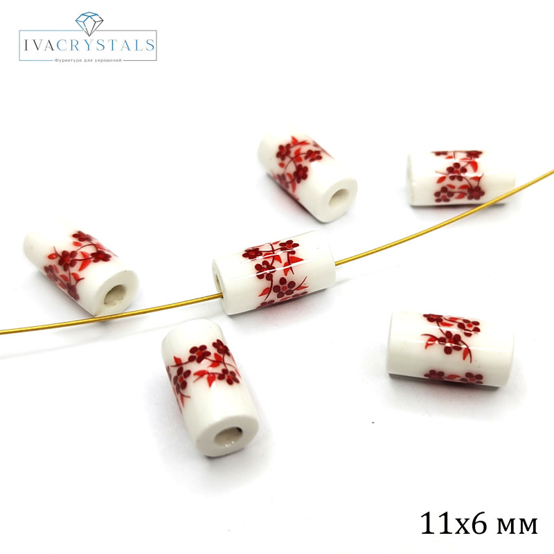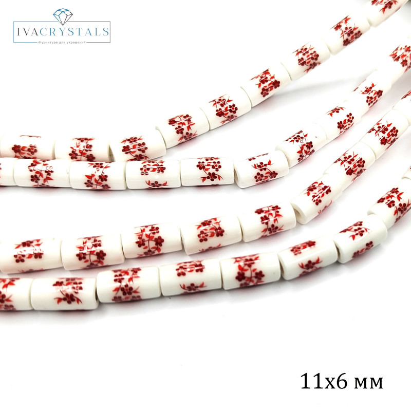 Купить Бусины керамические Столбик 11Х6 мм с красным узором Гжель вы можете в компании iva_crystals, оформив заказ в интернет магазине, или