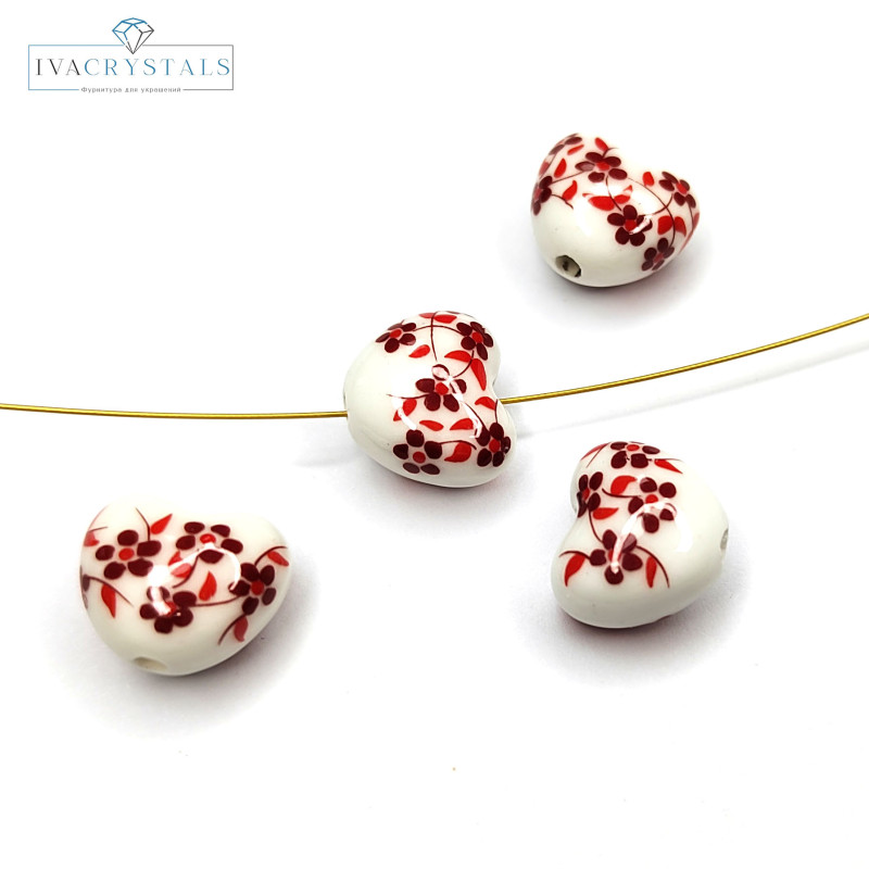 Купить Бусины керамические Сердечко 14 мм с узором Гжель вы можете в компании iva_crystals, оформив заказ в интернет магазине, или
