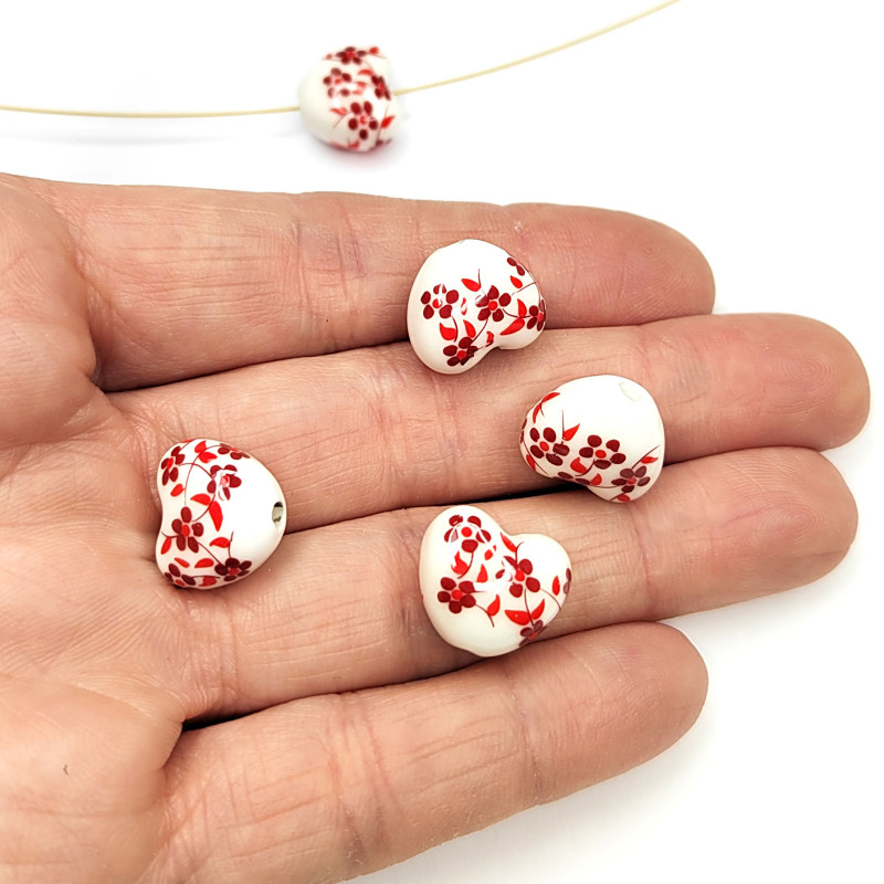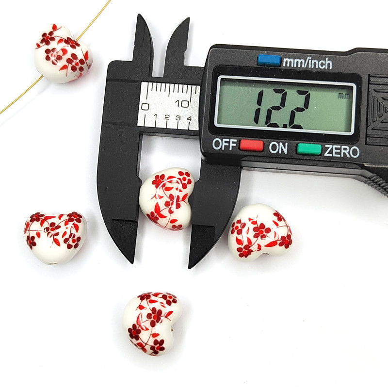 Бусины керамические Сердечко 14 мм с узором Гжель