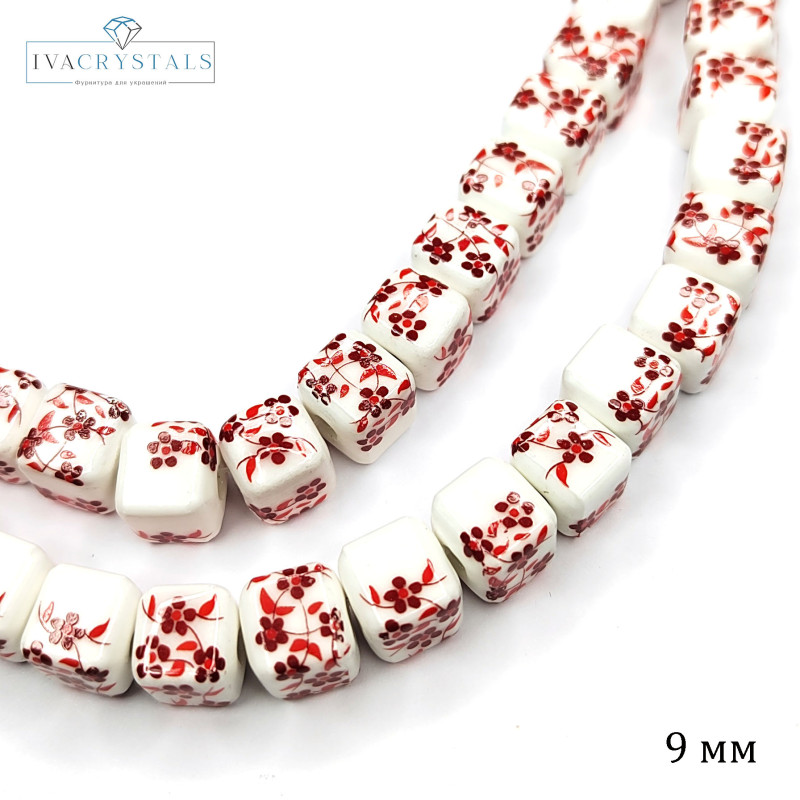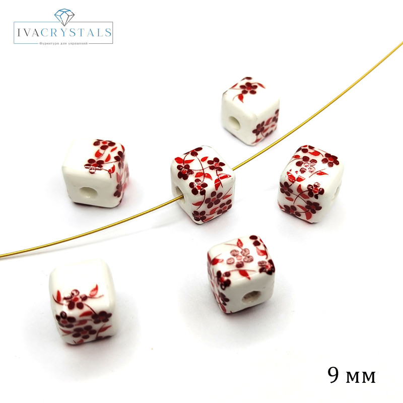 Купить Бусина керамическая Кубик 9 мм с узором Гжель вы можете в компании iva_crystals, оформив заказ в интернет магазине, или