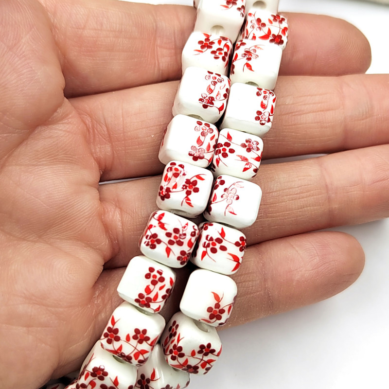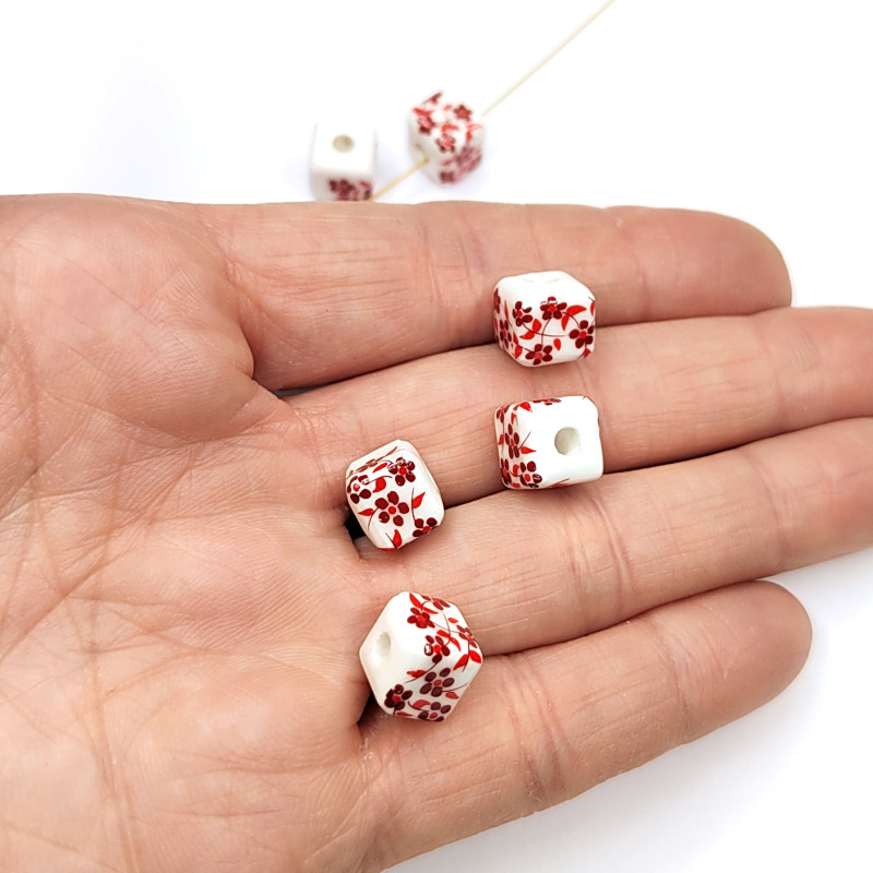 Бусины керамические в форме кубика, узор Гжель