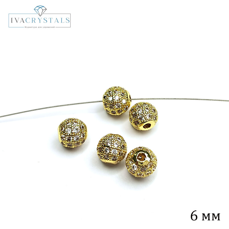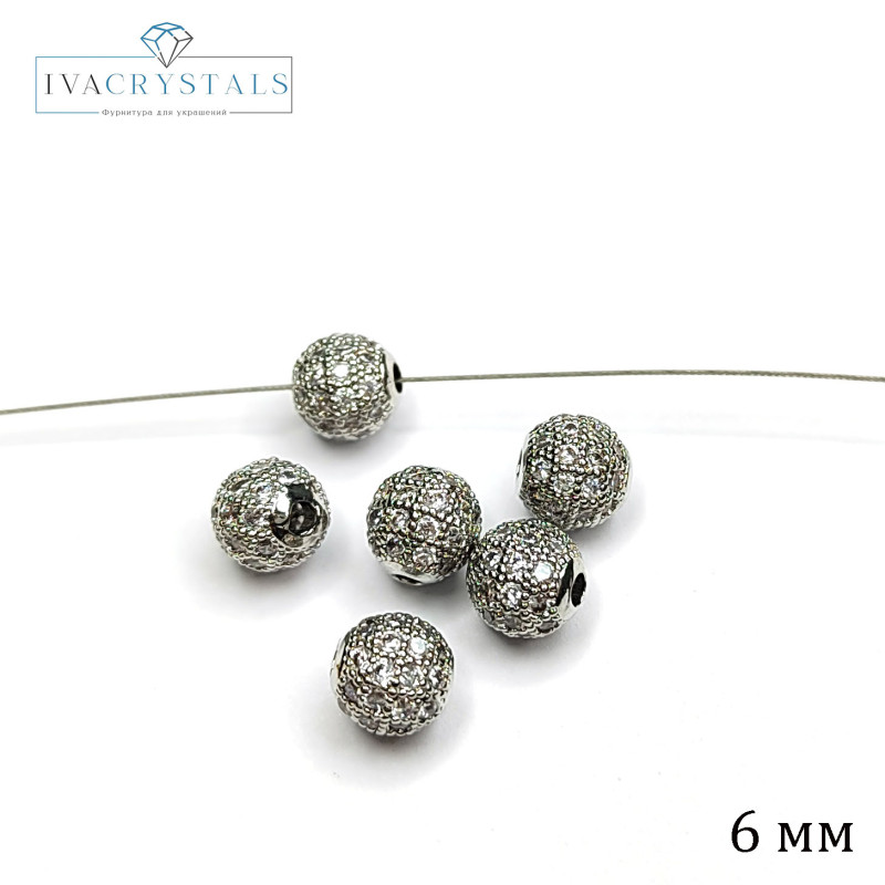Разделительная бусина с фианитами 6 мм, ШТУКА