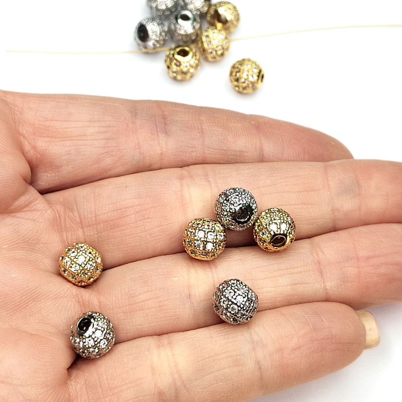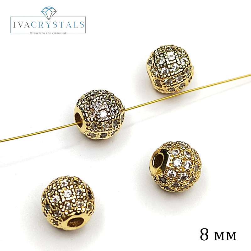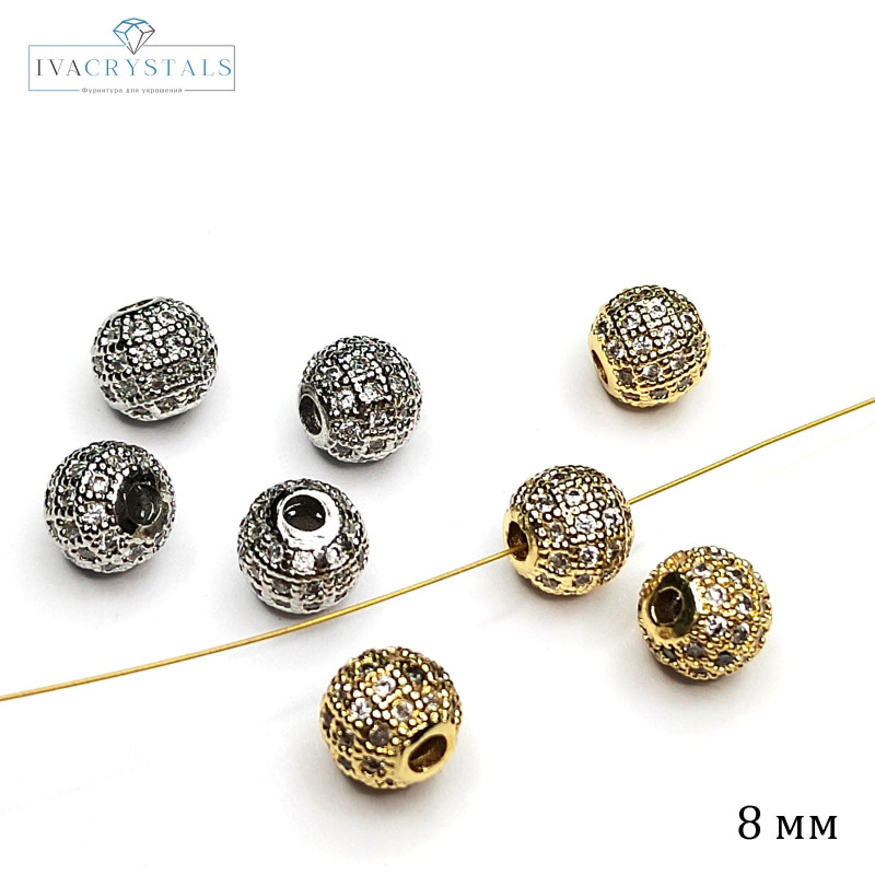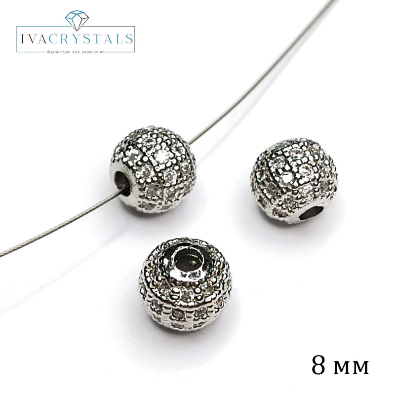 Разделительная бусина с фианитами 8 мм, ШТУКА