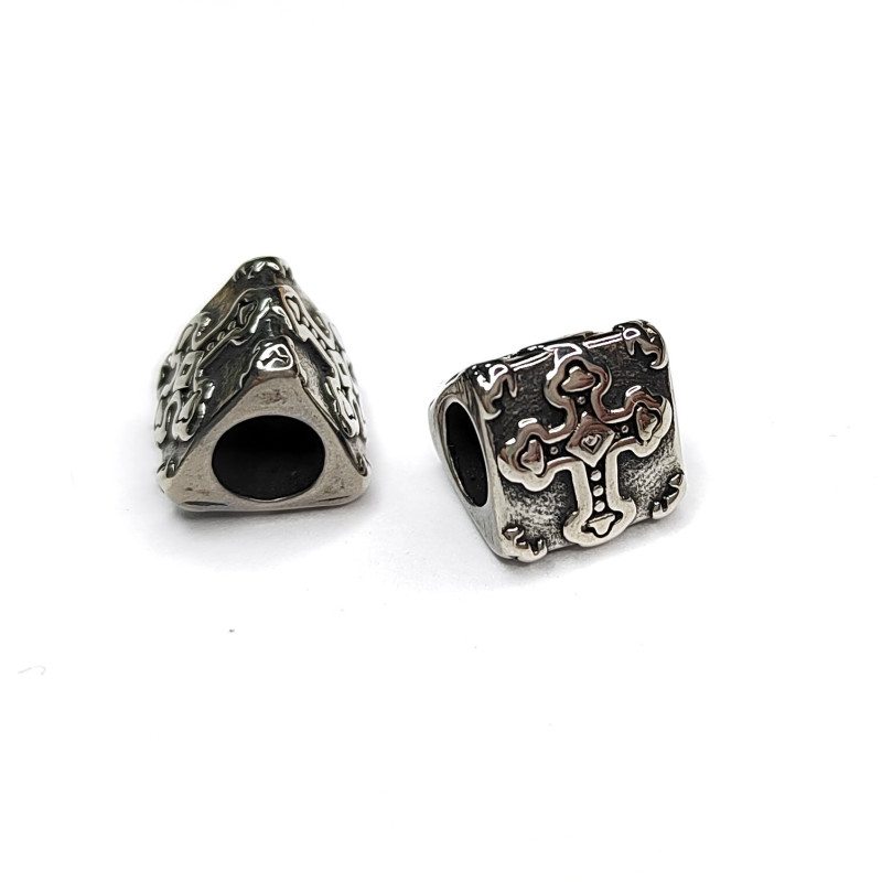 Купить Разделительная бусина 11х10 мм треугольной формы из нержавеющей стали с чернением, узор Крест, штука вы можете в компании iva_crystals, оформив заказ в интернет магазине, или