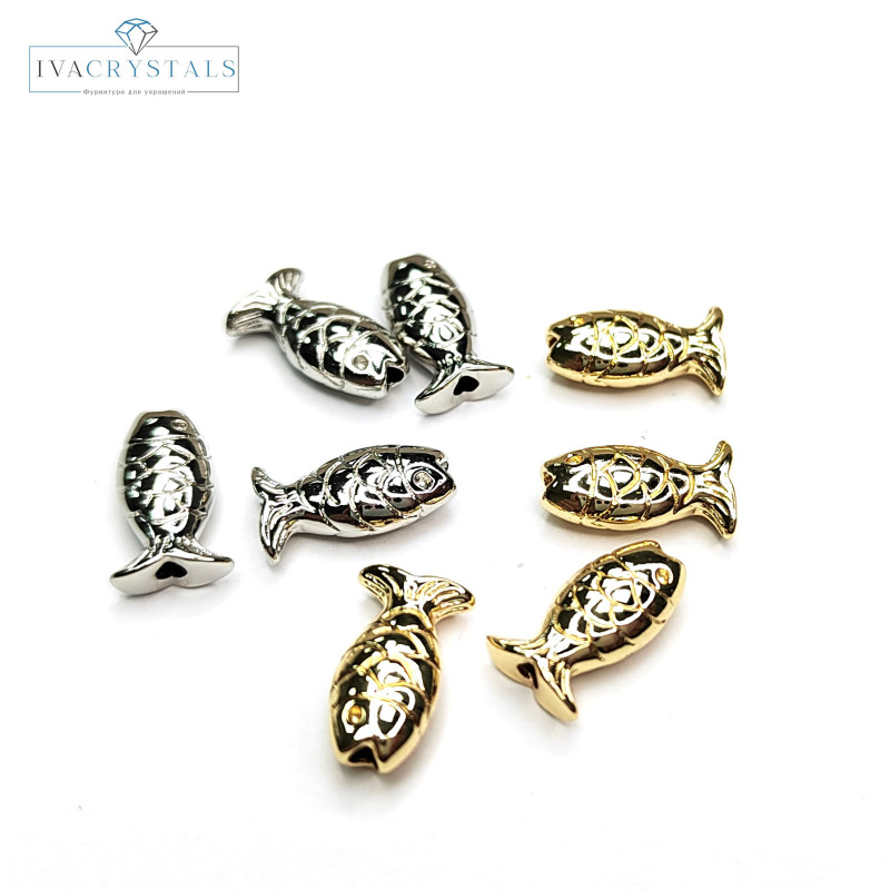 Бусины-разделители металлические в форме рыбки