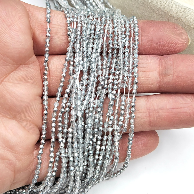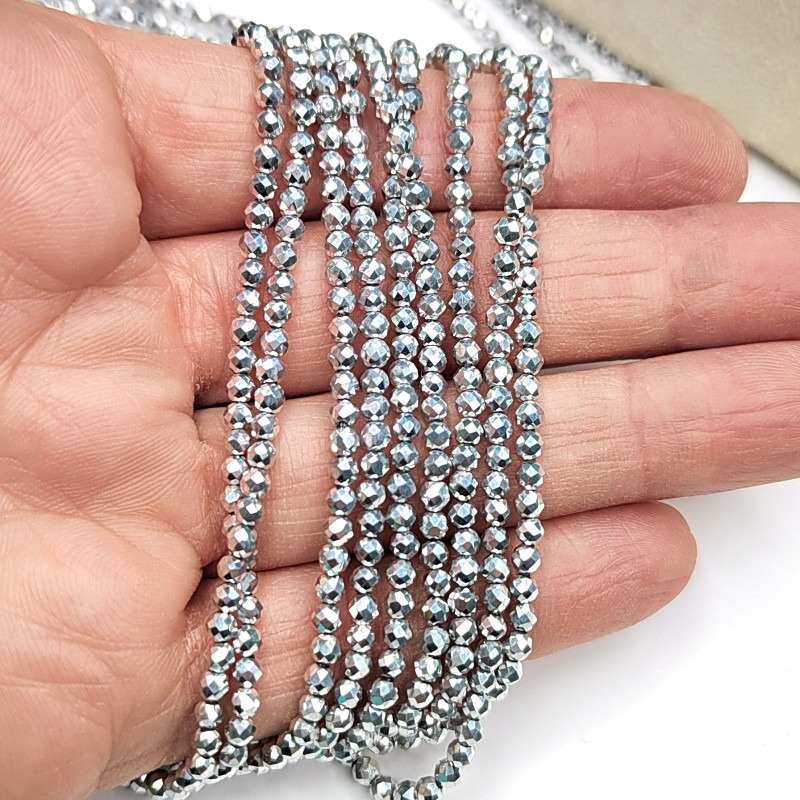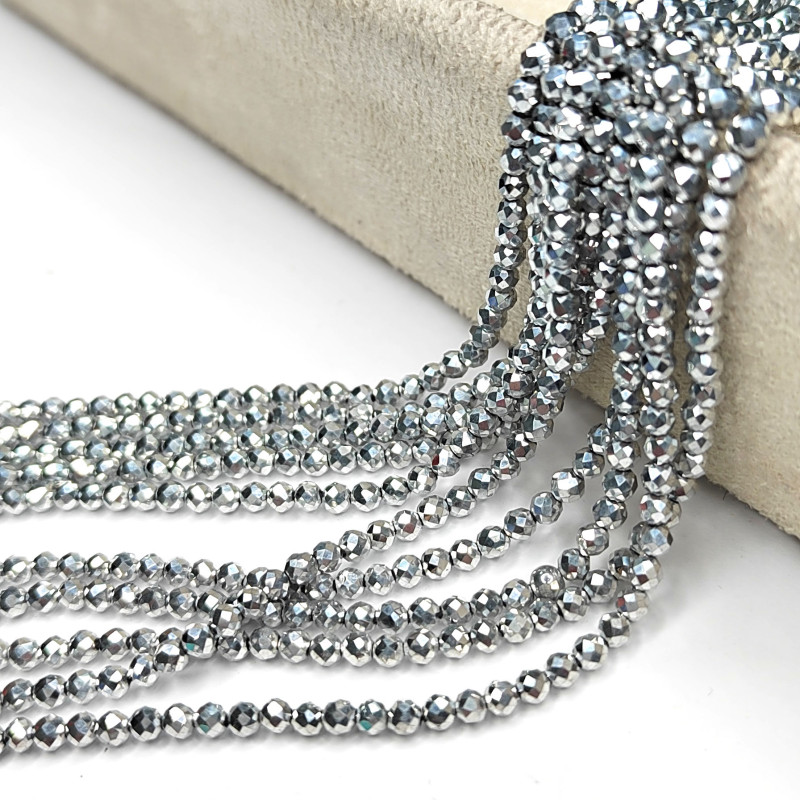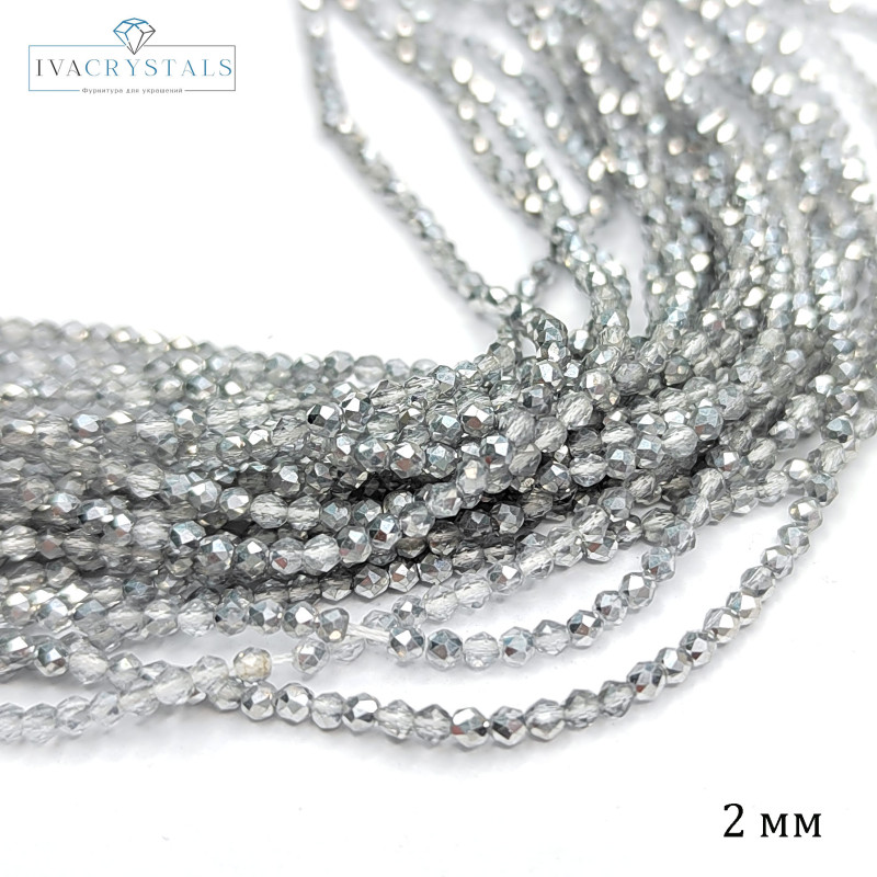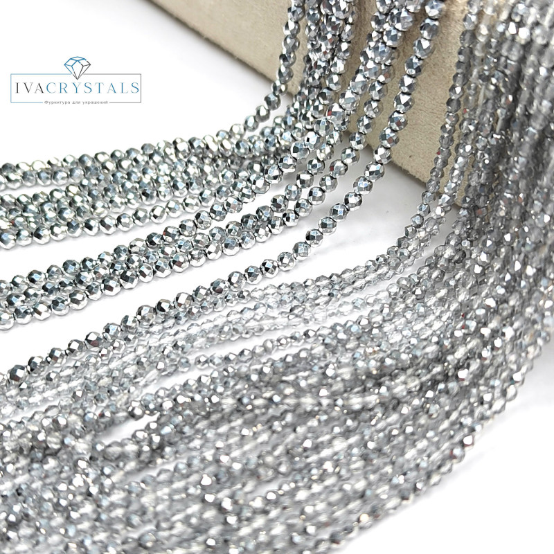 Стеклянные бусины Серебристого цвета в огранке, с гальваническим покрытием