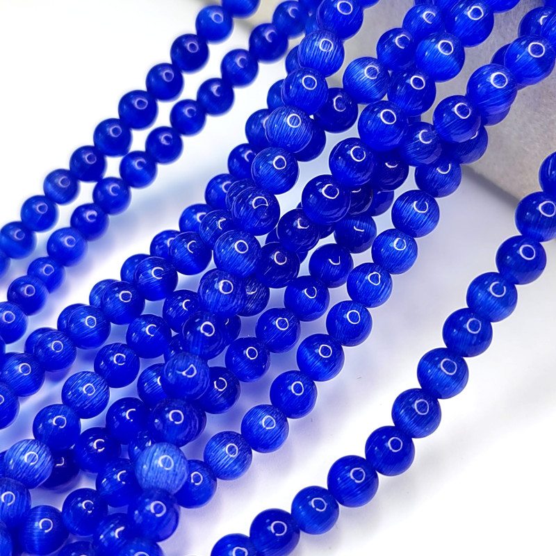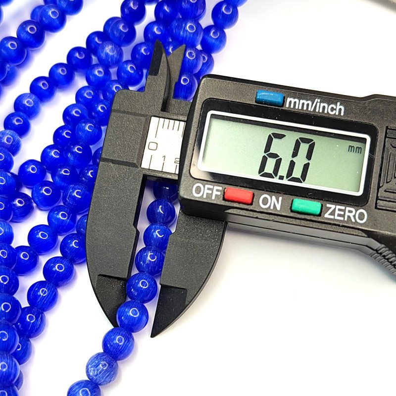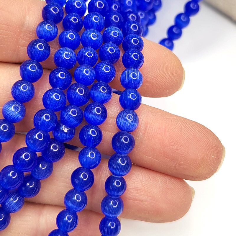 Кошачий глаз 6 мм, бусины гладкий шар, цвет Синий, нить 38-39 см