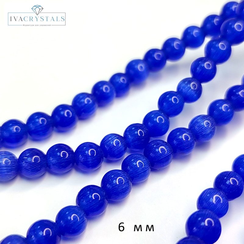 Купить Кошачий глаз 6 мм, бусины гладкий шар, цвет Синий, нить 38-39 см вы можете в компании iva_crystals, оформив заказ в интернет магазине, или