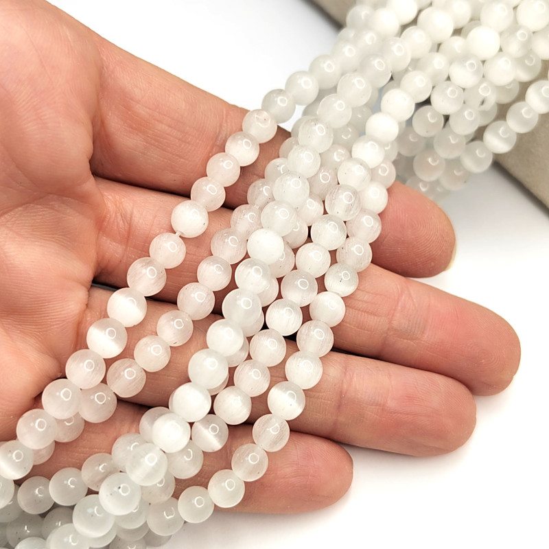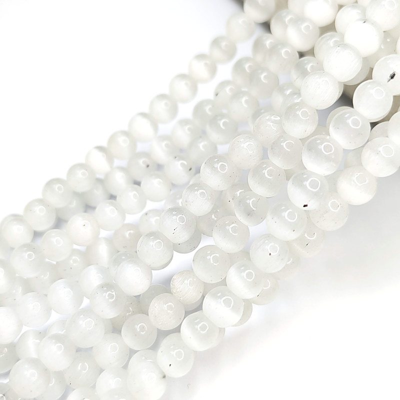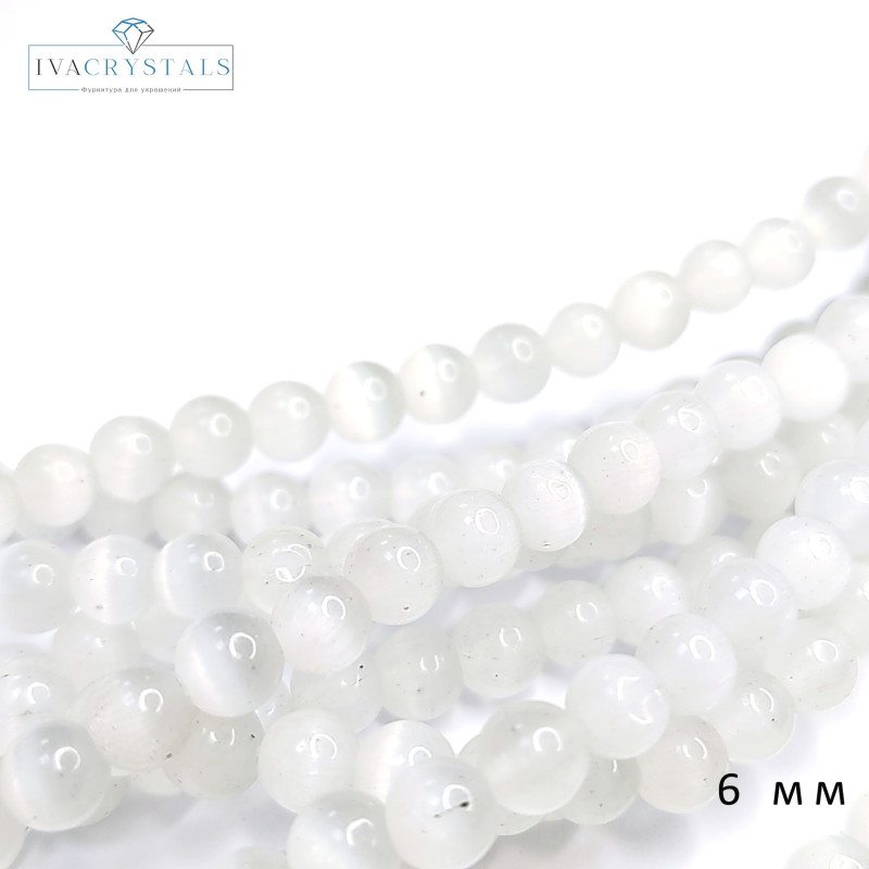 Купить Кошачий глаз 6 мм, бусины гладкий шар, цвет БЕЛЫЙ, нить 38-39 см вы можете в компании iva_crystals, оформив заказ в интернет магазине, или