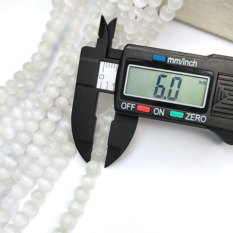 Кошачий глаз 6 мм, бусины гладкий шар, цвет БЕЛЫЙ, нить 38-39 см