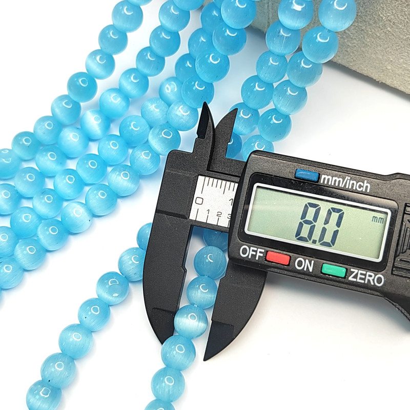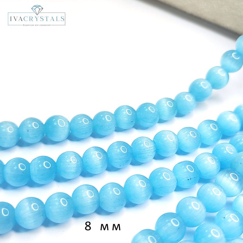 8 мм Кошачий глаз, бусины гладкий шар, цвет Голубой, нить 36-37 см