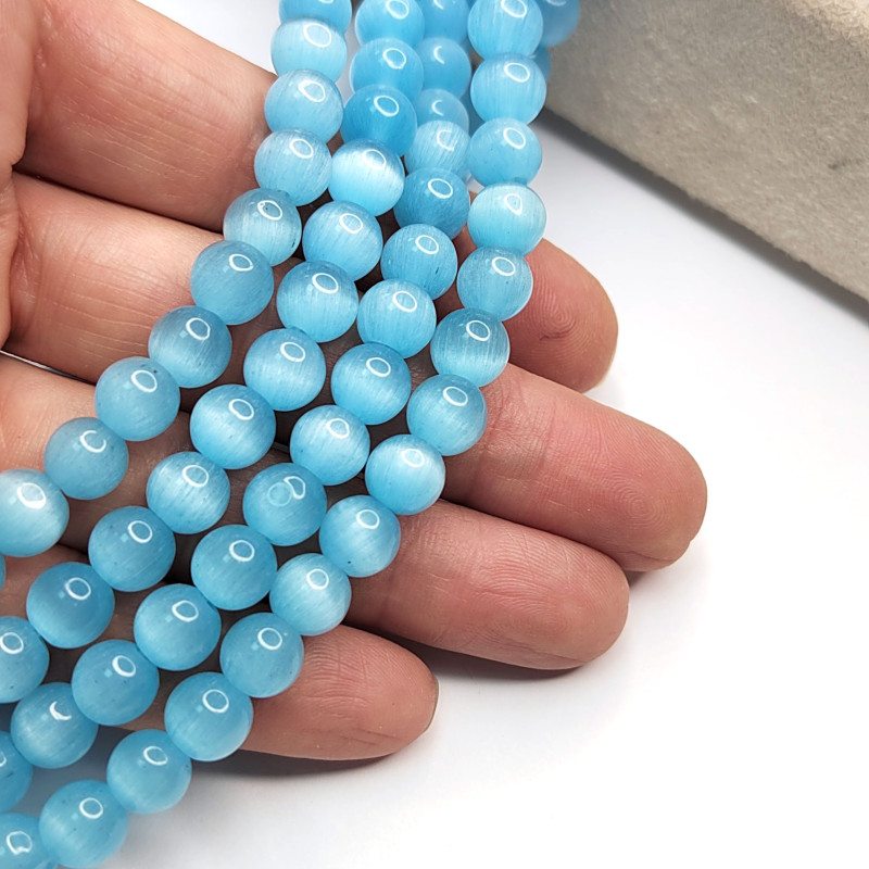 Купить 8 мм Кошачий глаз, бусины гладкий шар, цвет Голубой, нить 36-37 см вы можете в компании iva_crystals, оформив заказ в интернет магазине, или