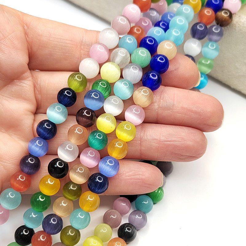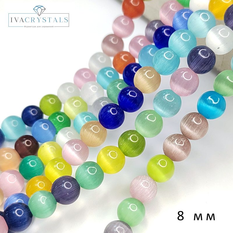 Купить 8 мм Кошачий глаз, бусины гладкий шар, цвет МИКС, нить 36-37 см вы можете в компании iva_crystals, оформив заказ в интернет магазине, или