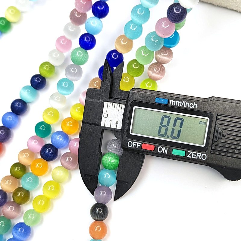 8 мм Кошачий глаз, бусины гладкий шар, цвет МИКС, нить 36-37 см