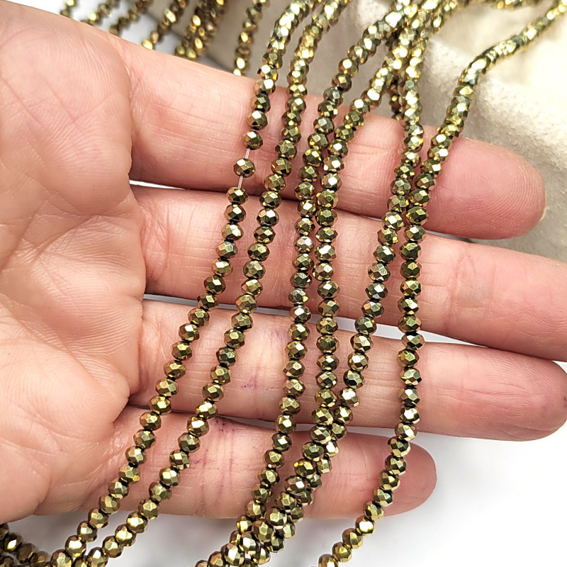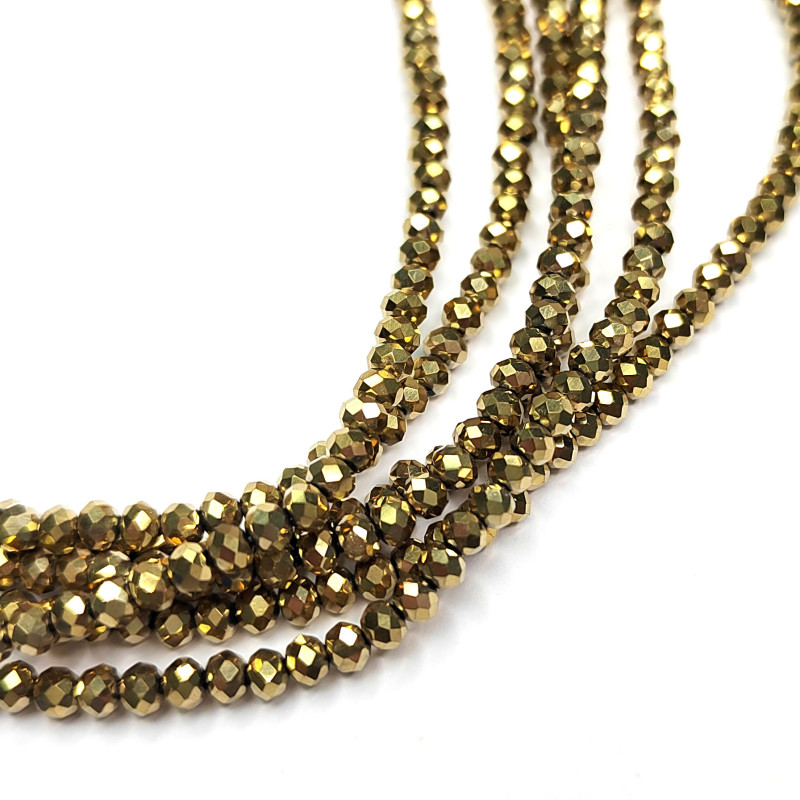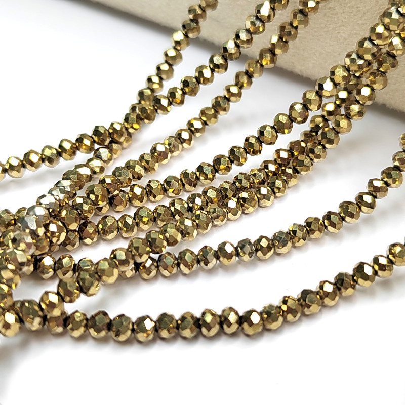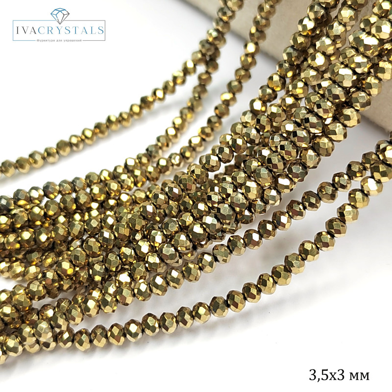 Купить Рондели 3,5х3 мм стекло, цвет золотистый, нить 32-33 см вы можете в компании iva_crystals, оформив заказ в интернет магазине, или
