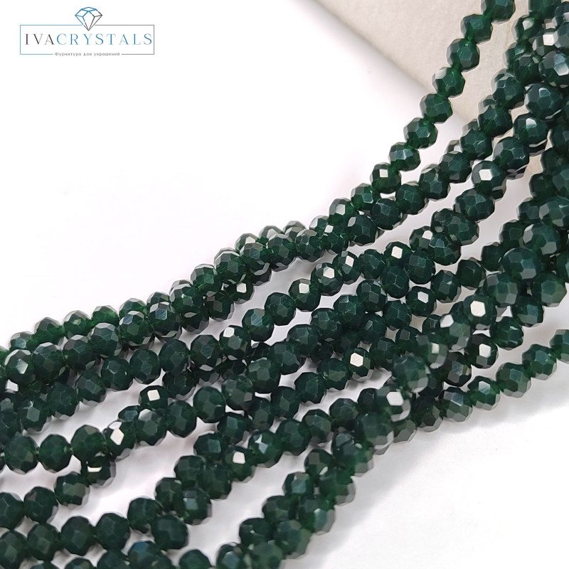 Купить Рондели 4х3,5 мм стекло, Темно-Зелёные, нить 40 см вы можете в компании iva_crystals, оформив заказ в интернет магазине, или