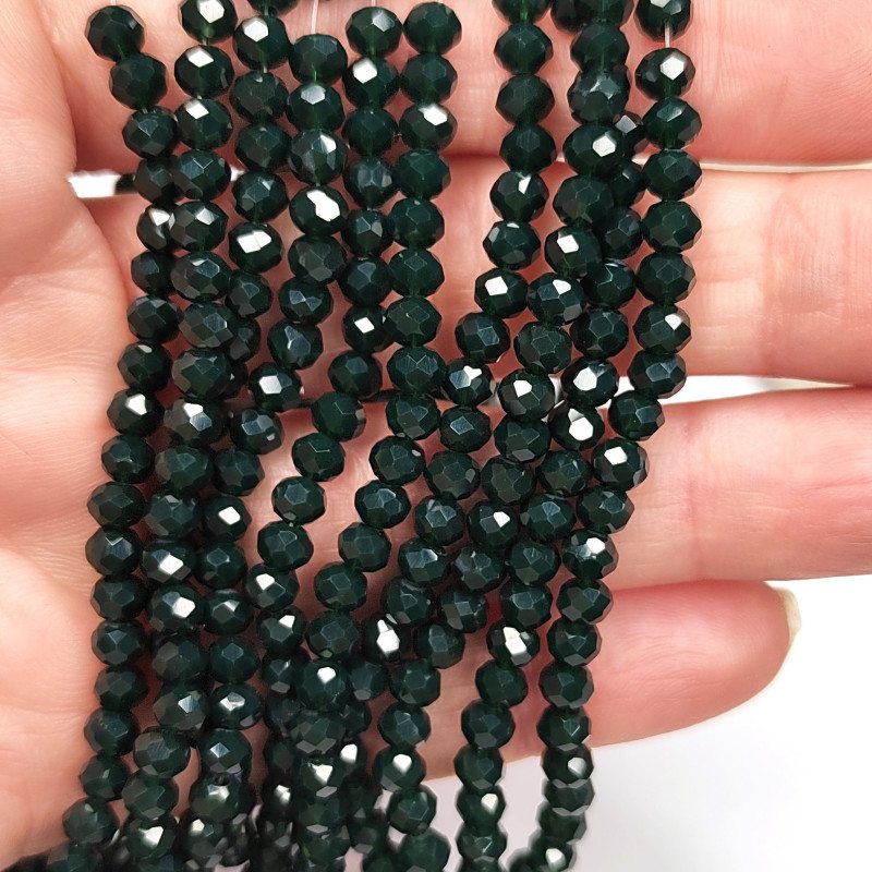 Рондели 4х3,5 мм стекло, Темно-Зелёные, нить 40 см