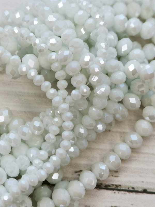 Рондели стеклянные белые АВ 8 мм, бусины с сиянием, нить