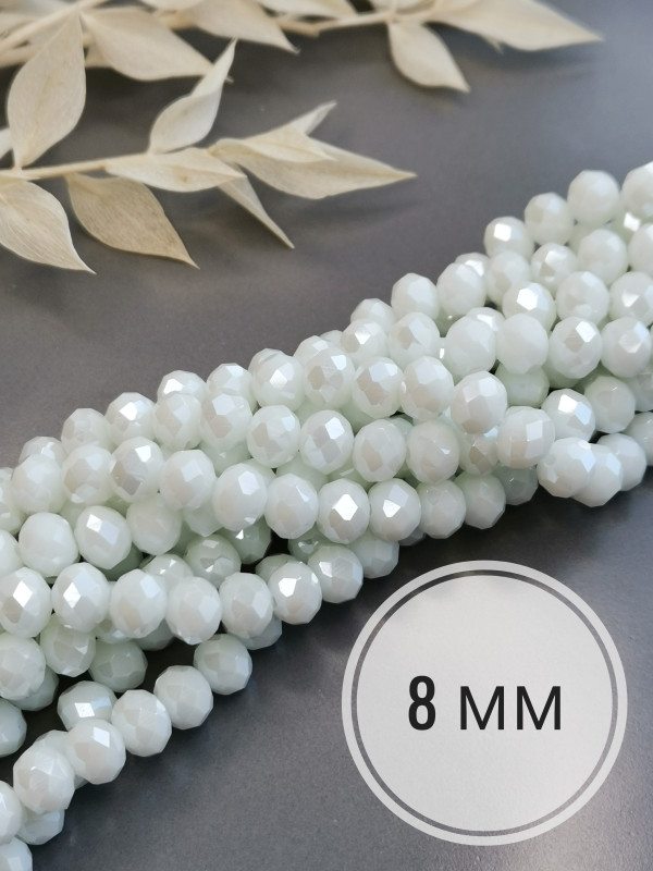 Купить Рондели стеклянные белые АВ 8 мм, бусины с сиянием, нить вы можете в компании iva_crystals, оформив заказ в интернет магазине, или