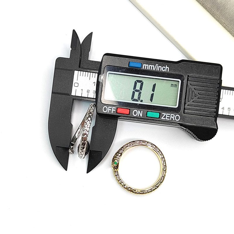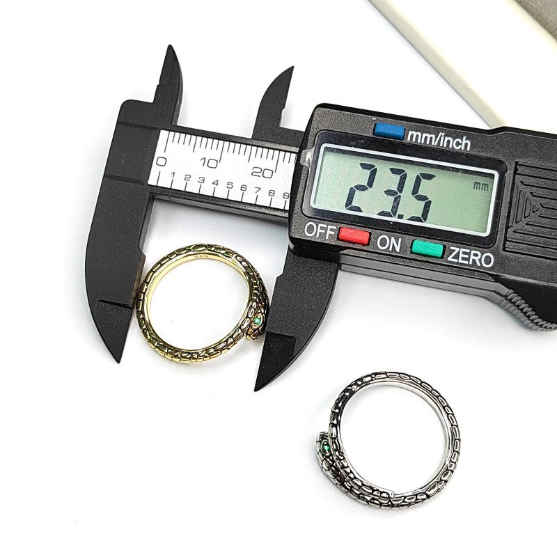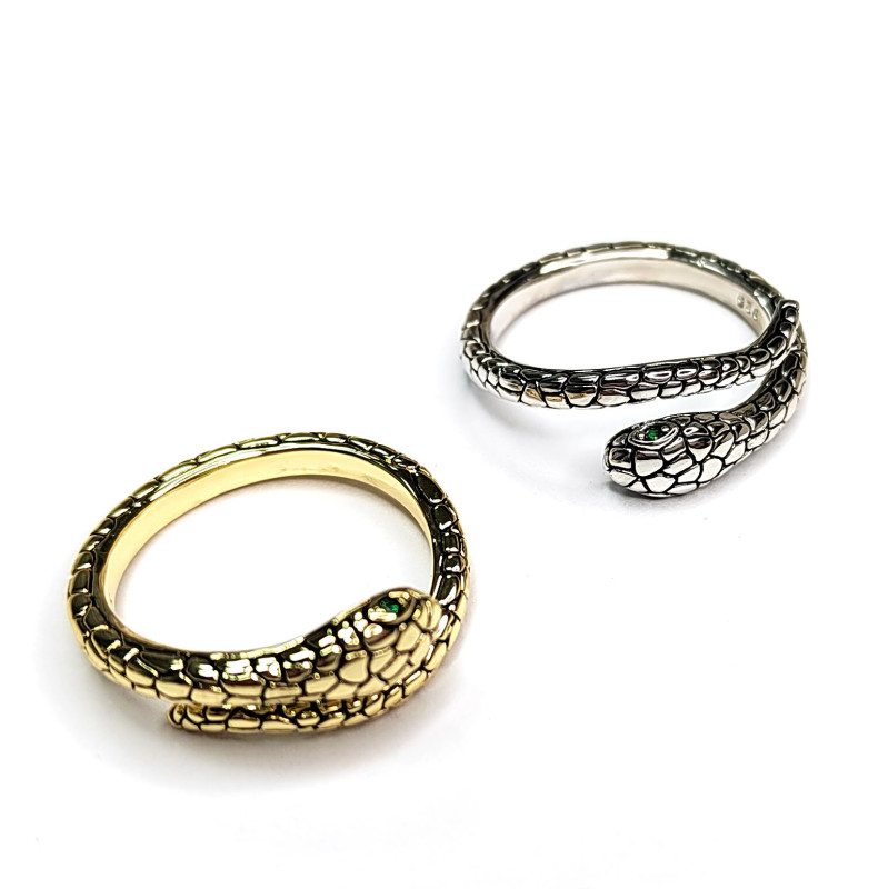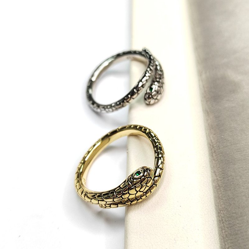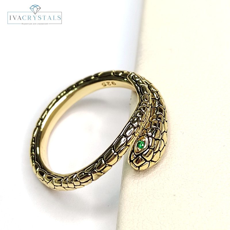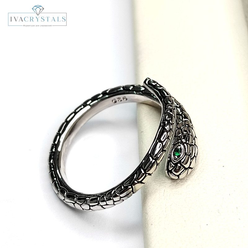 Кольцо безразмерное Змейка с зелёными глазками (фианиты).