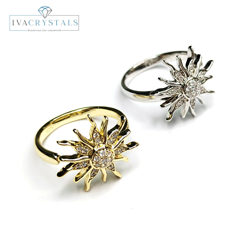 Купить Кольцо безразмерное с фианитами, Солнце 17,5 мм вы можете в компании iva_crystals, оформив заказ в интернет магазине, или