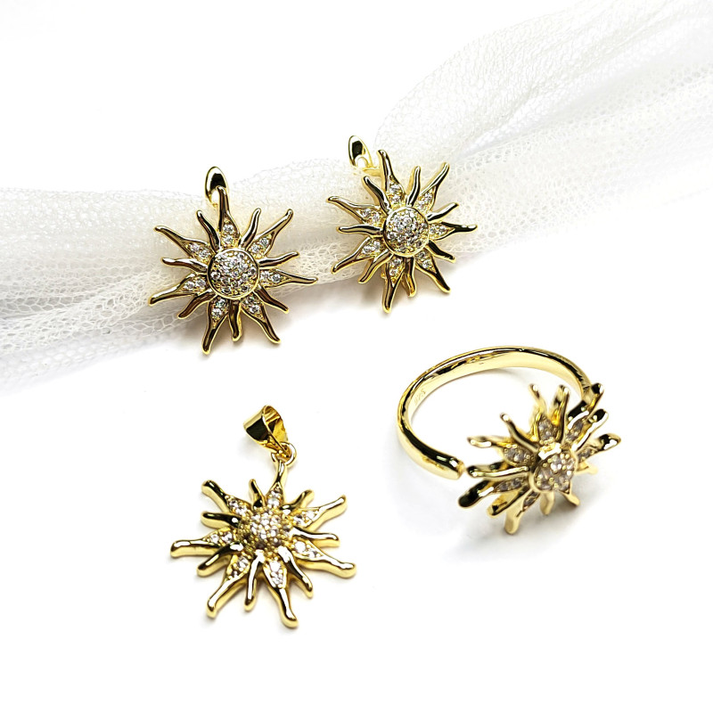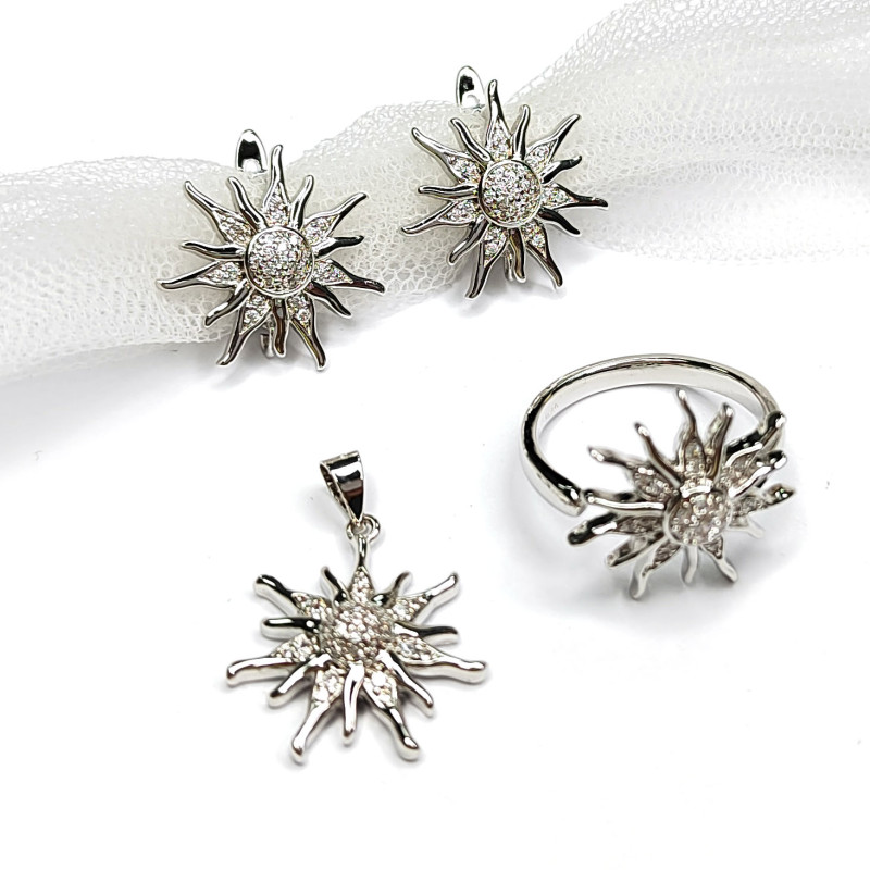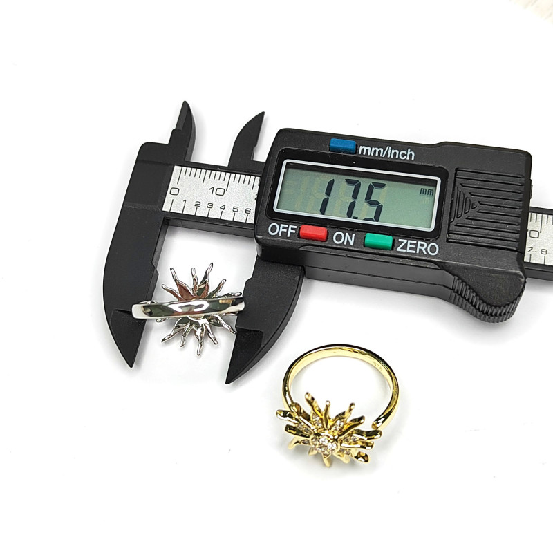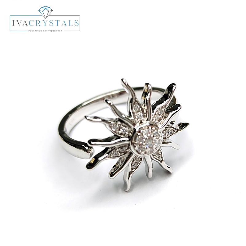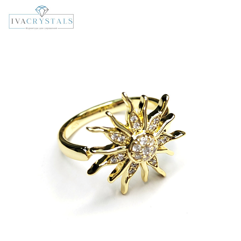 Кольцо безразмерное с фианитами, Солнце 17,5 мм