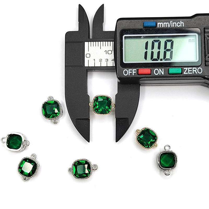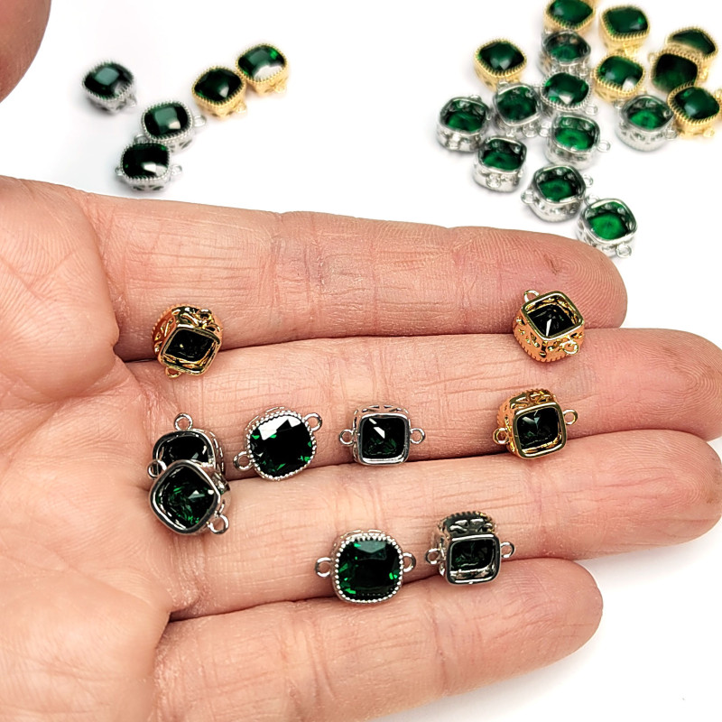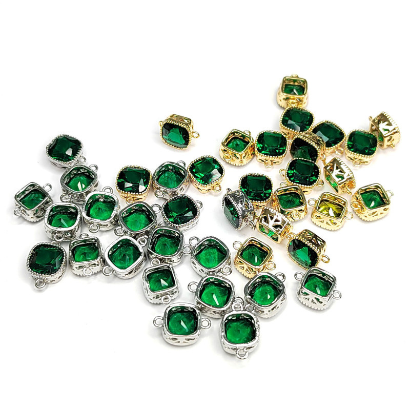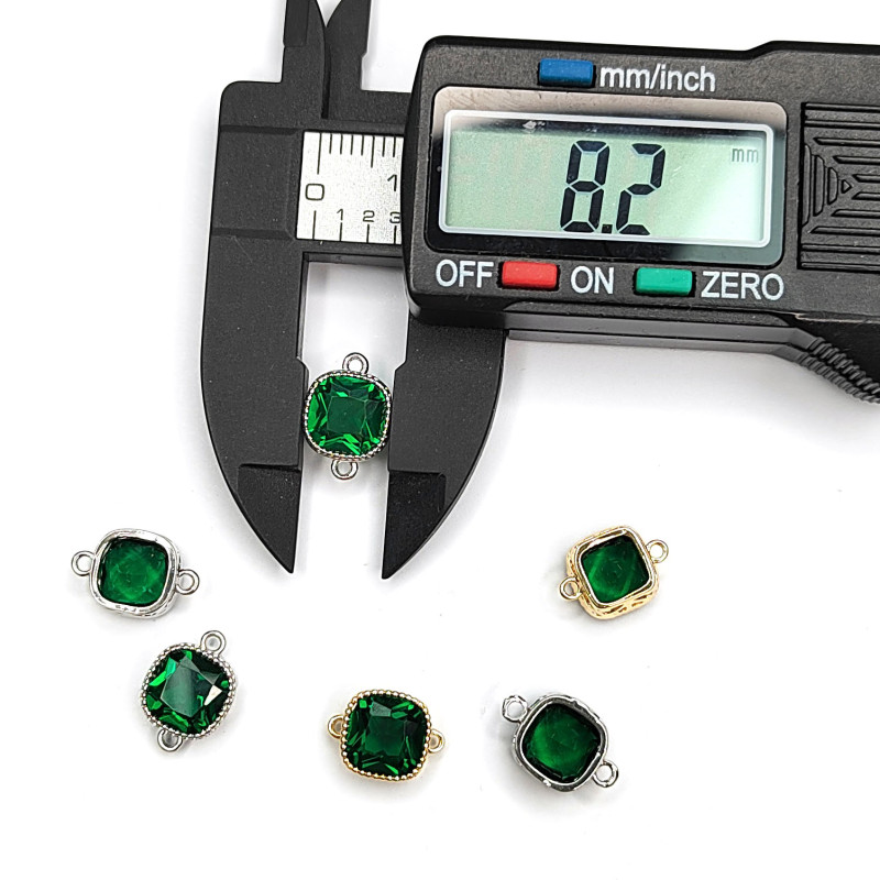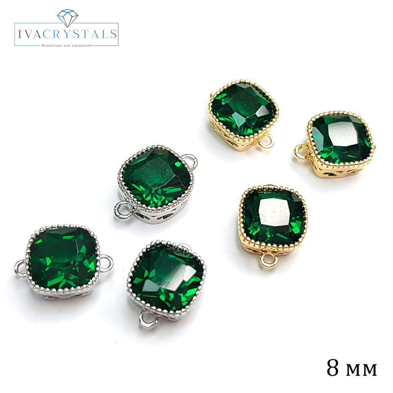 8 мм Квадратный коннектор с зелёным фианитом, штука