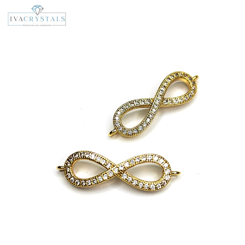 Коннектор Бесконечность 26х7,5 мм Позолоченное покрытие с фианитами, штука
