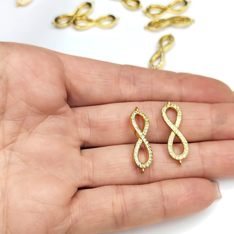 Купить Коннектор Бесконечность 26х7,5 мм Позолоченное покрытие с фианитами, штука вы можете в компании iva_crystals, оформив заказ в интернет магазине, или