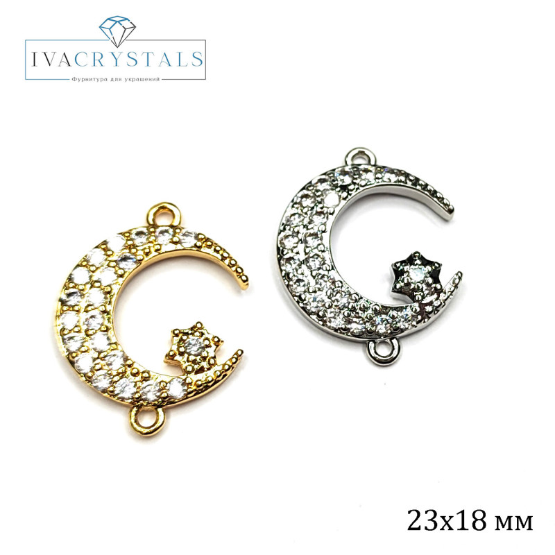 Купить Коннектор Полумесяц 23х18 мм с фианитами, штука вы можете в компании iva_crystals, оформив заказ в интернет магазине, или