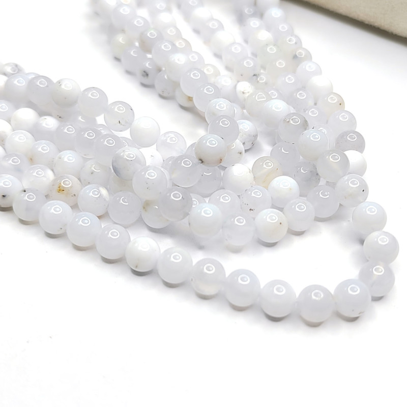 Голубой агат (сапфирин) 6,5 мм, натуральный камень, нить 38-39 см