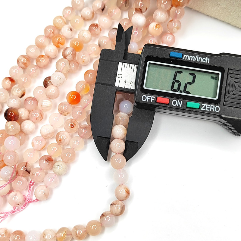 Натуральный агат Сакура, форма бусины - гладкий шар