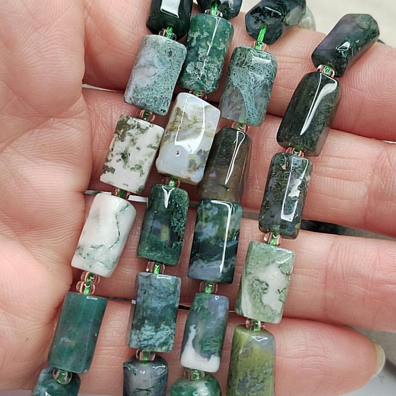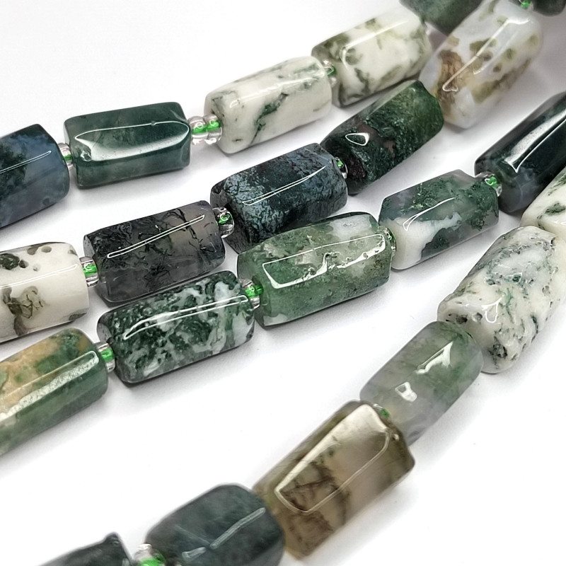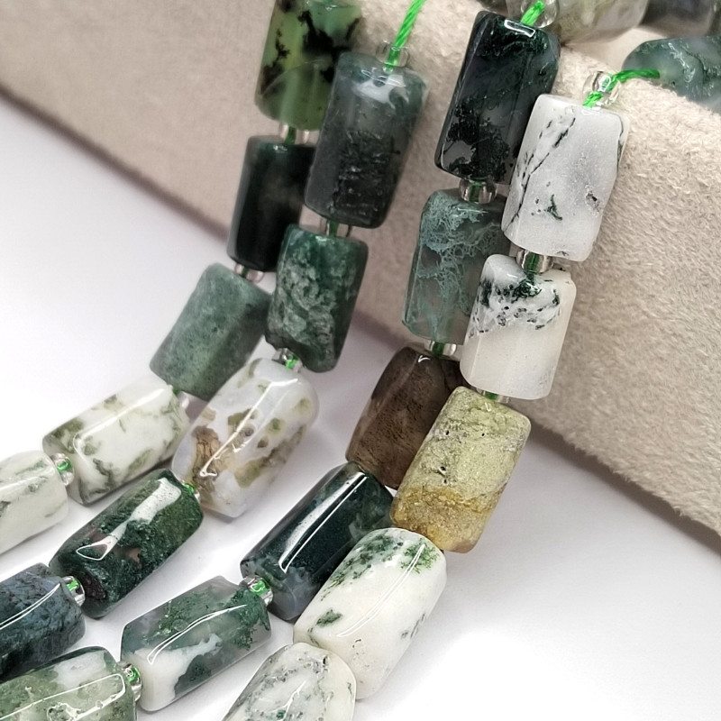 Купить Моховой агат натуральный 12х17 мм, Столбик, нить вы можете в компании iva_crystals, оформив заказ в интернет магазине, или