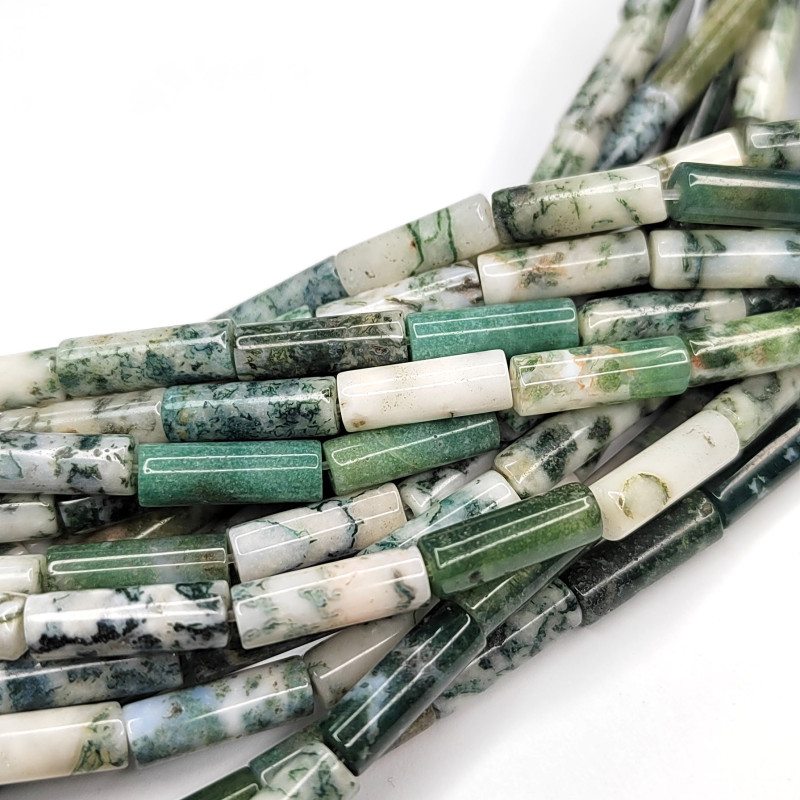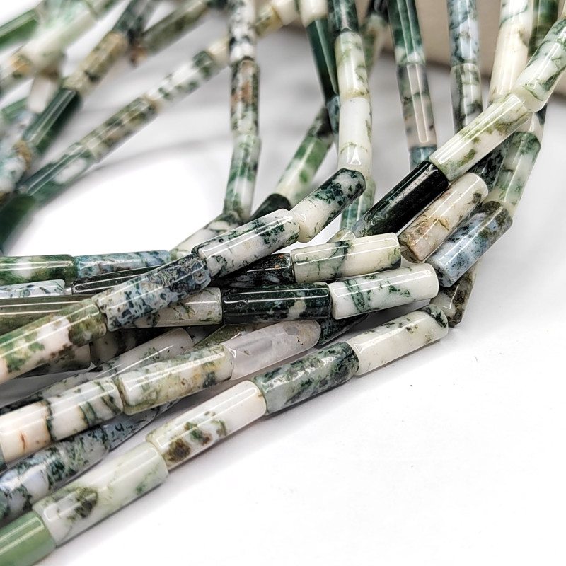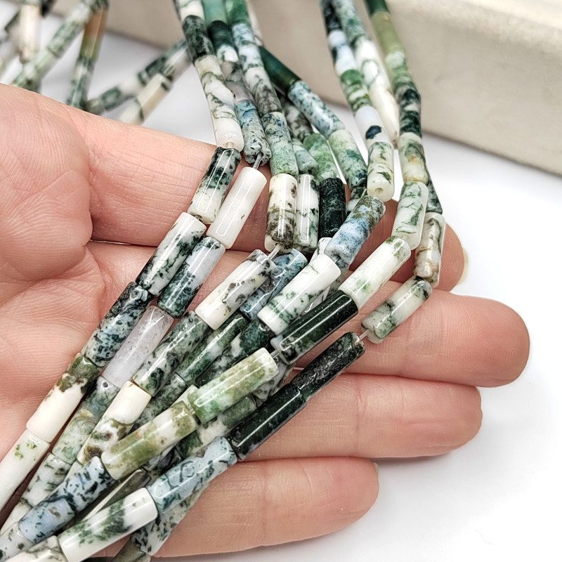 Агат моховой натуральный камень бусины-трубочки в нитях