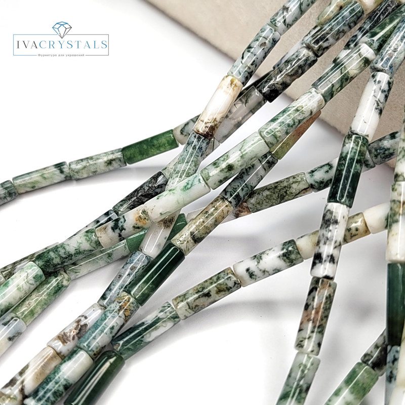 Купить Моховой агат натуральный 13х4 мм бусины, Трубочки вы можете в компании iva_crystals, оформив заказ в интернет магазине, или