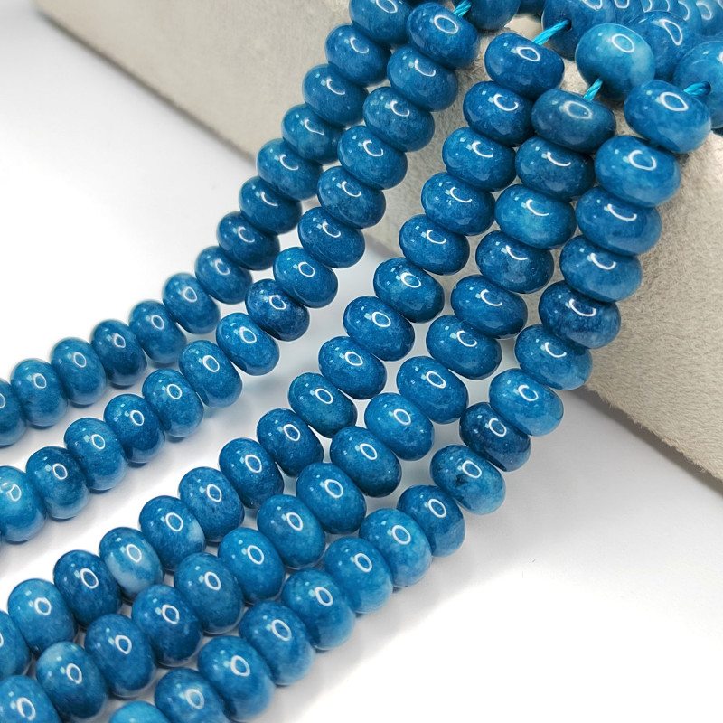 Аква кварц натуральный 8х5 мм рондели, цвет Синий, нить 38 см