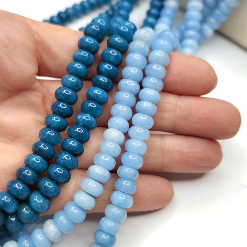 Аква кварц натуральный 8х5 мм рондели, цвет Голубой, нить 38 см