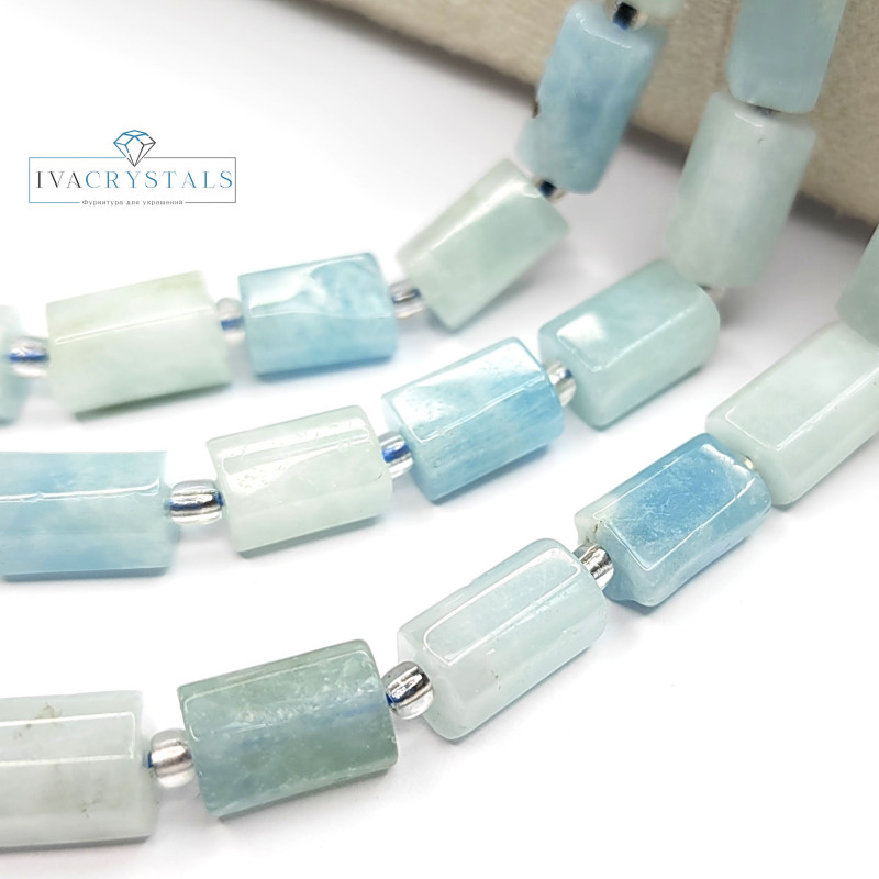 Аквамарин натуральный, форма бусин - столбик