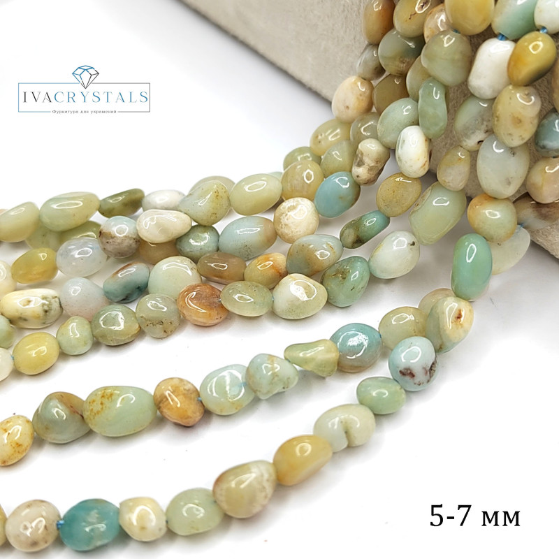 Купить 5х7 мм Амазонит натуральный, галтовка, НИТЬ 40 см вы можете в компании iva_crystals, оформив заказ в интернет магазине, или