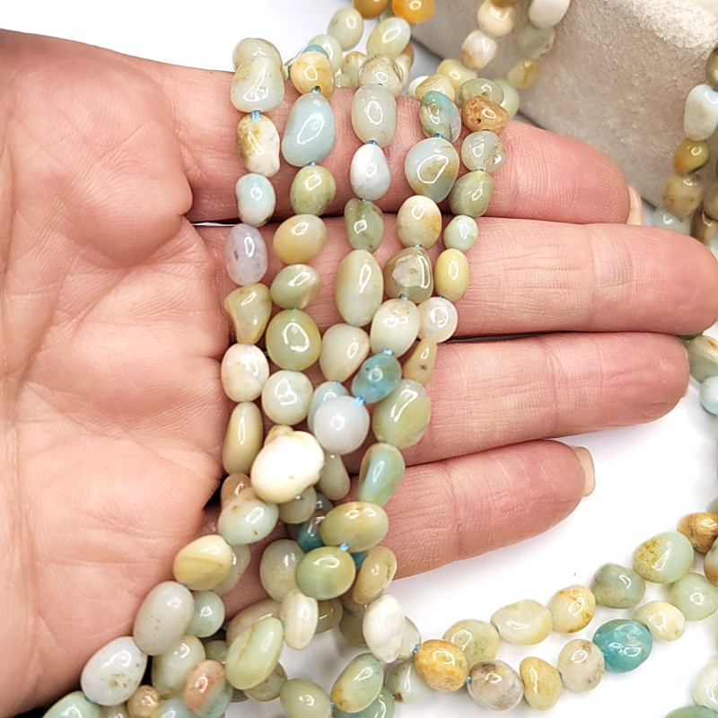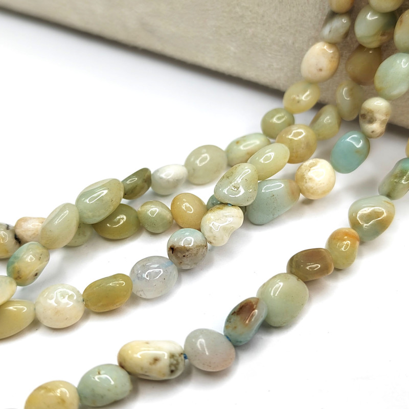 Амазонит натуральный, форма бусин - галтовка