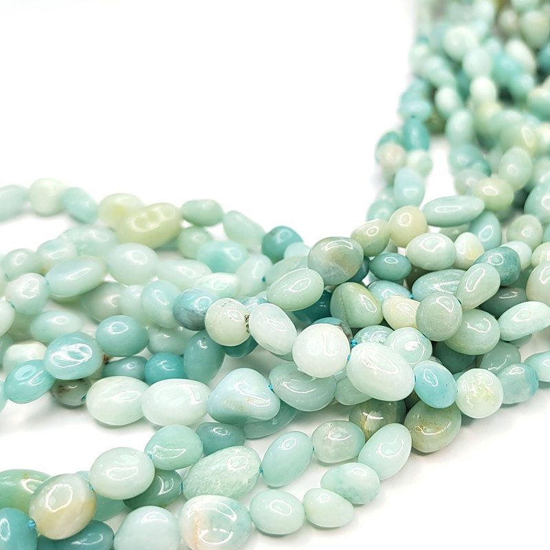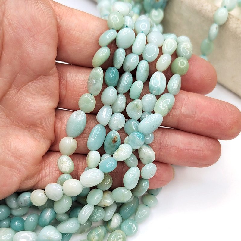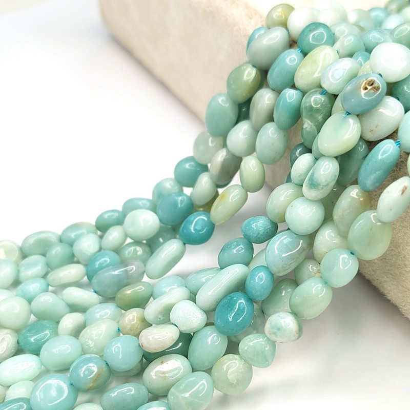 Амазонит натуральный, форма бусин - галтовка