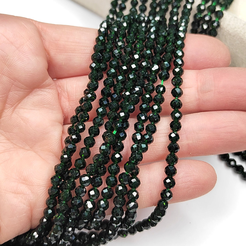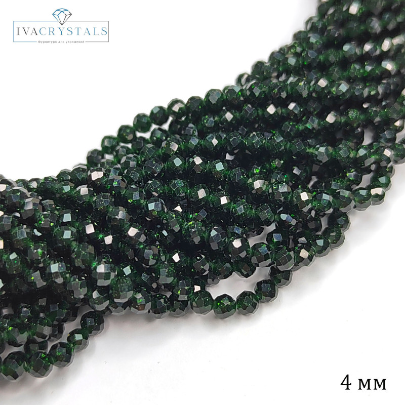 Авантюрин натуральный 4 мм бусины в огранке, нить 36-37 см