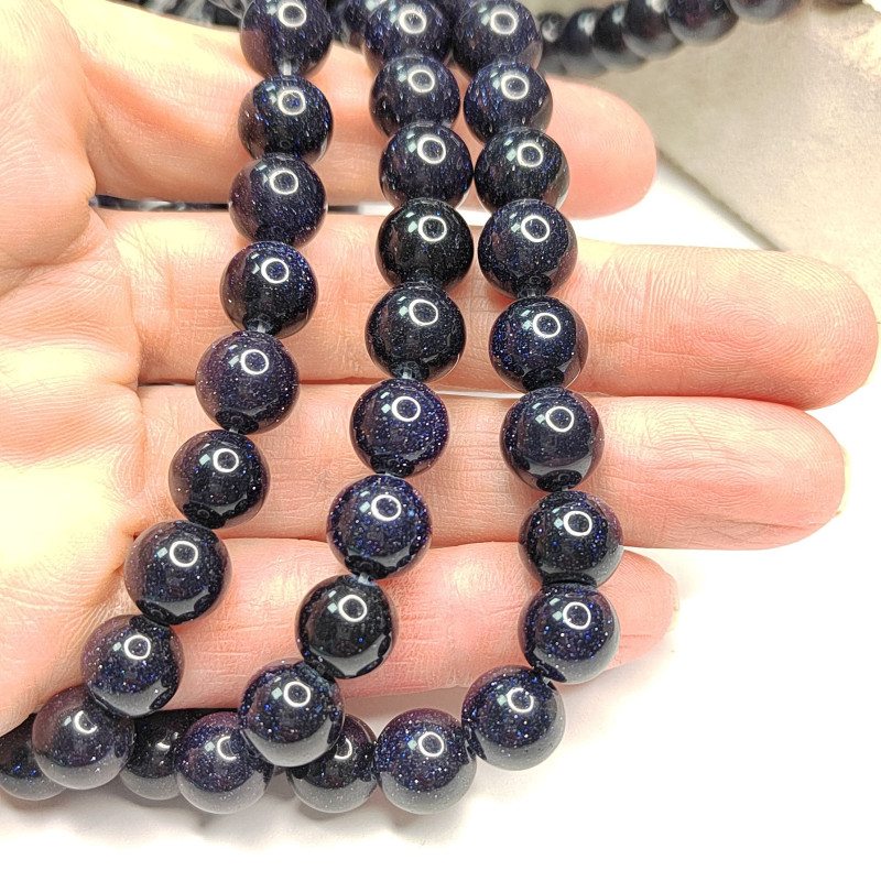 Авантюрин синий, имитация (стекло), бусины в нитях
