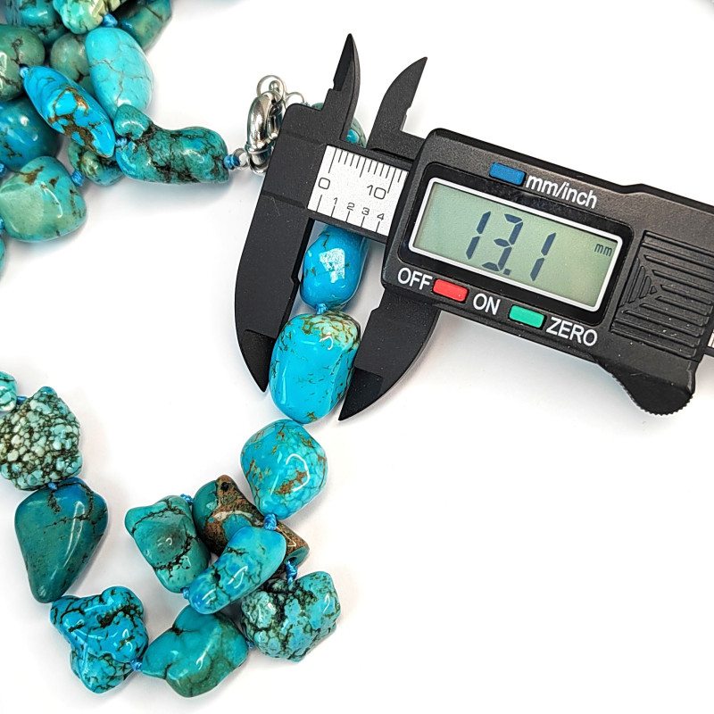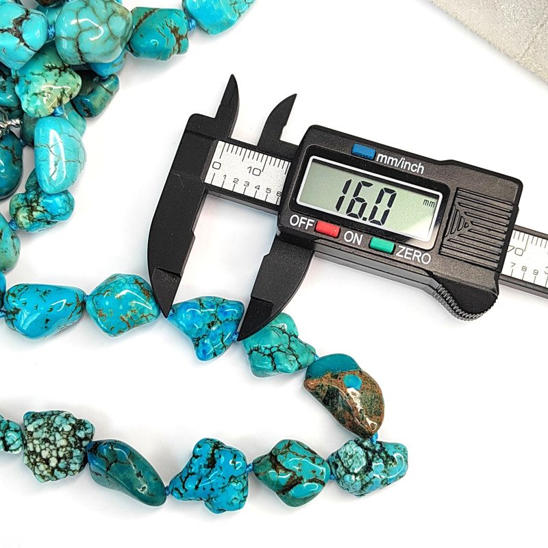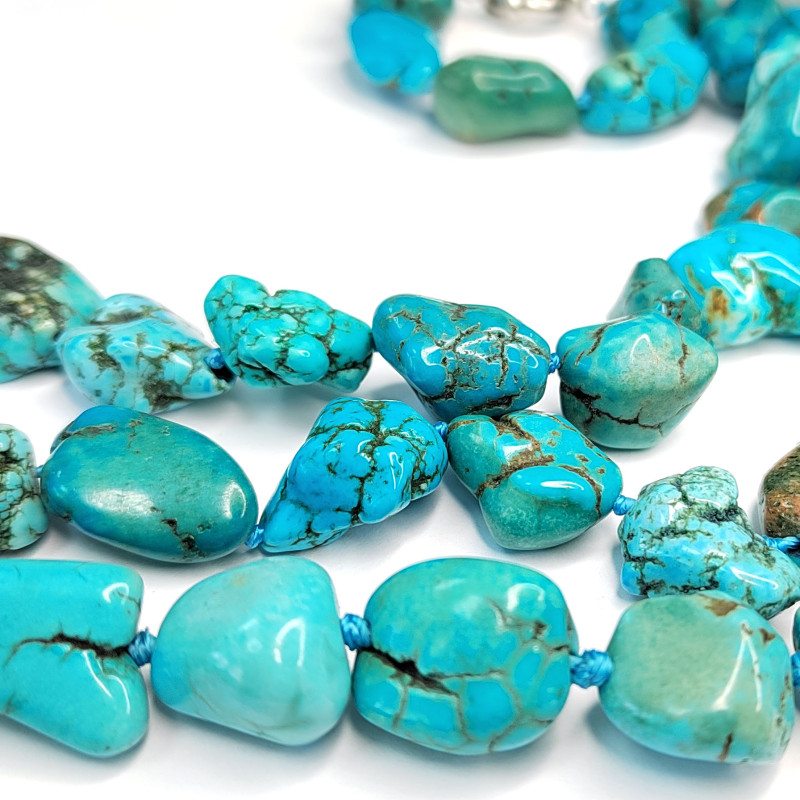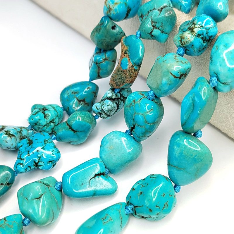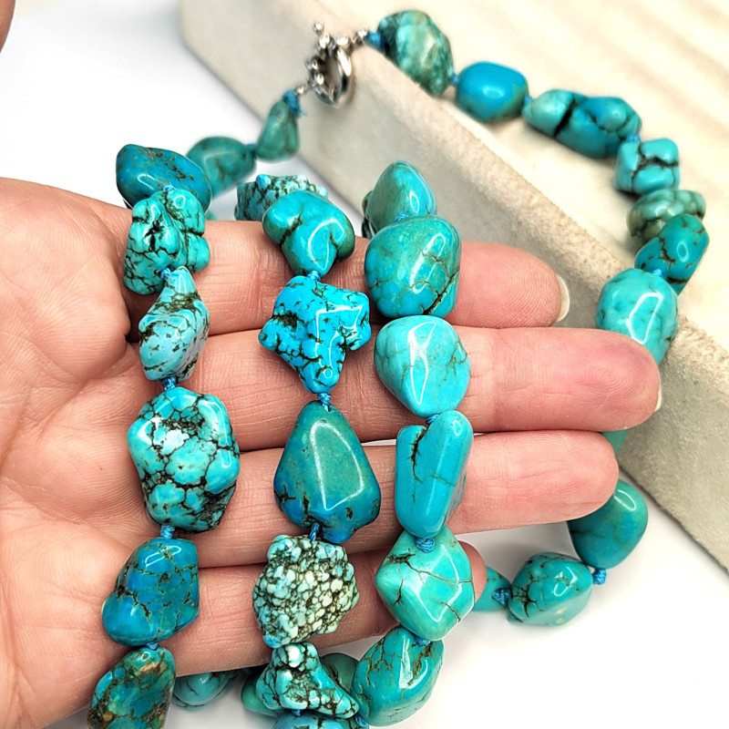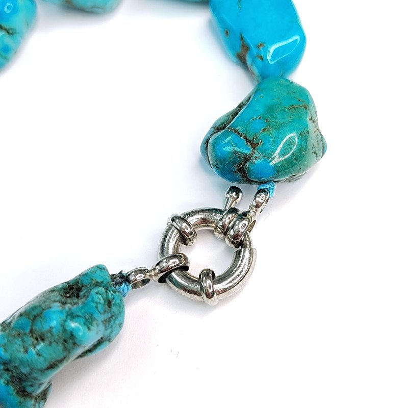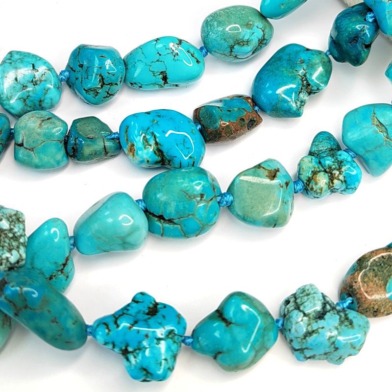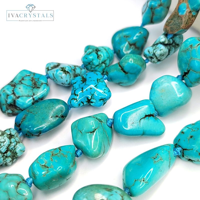 Бирюза натуральный камень, бусины в форме крупной галтовки на нити с шпренгельным замочком (штурвал).