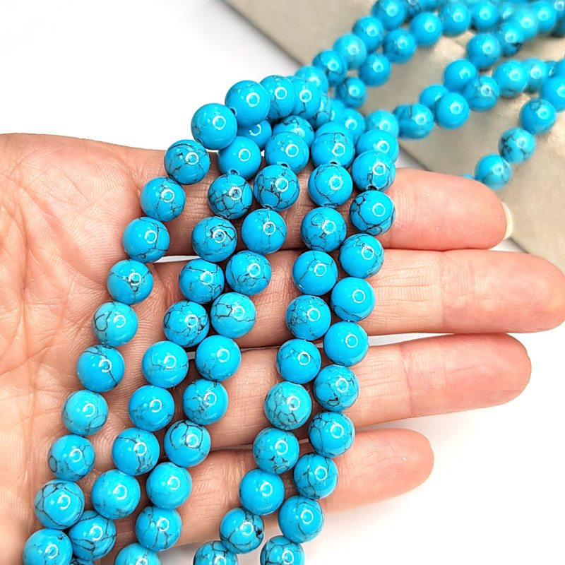 8 мм Бирюза прессованный камень, НИТЬ 39 см