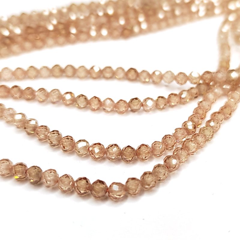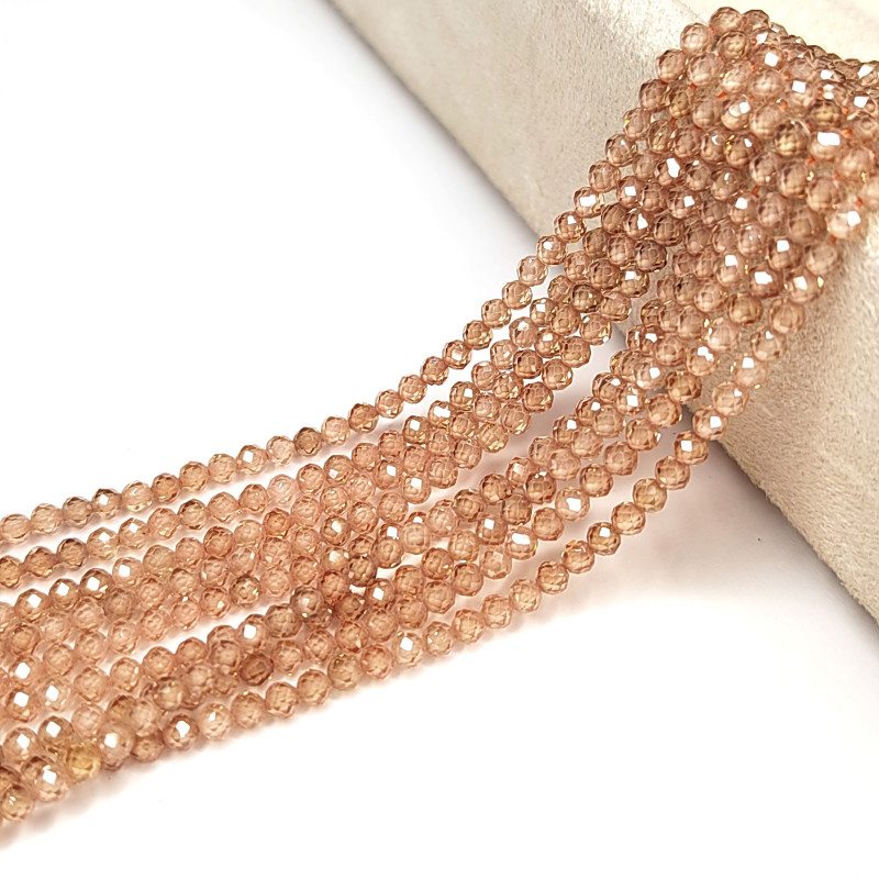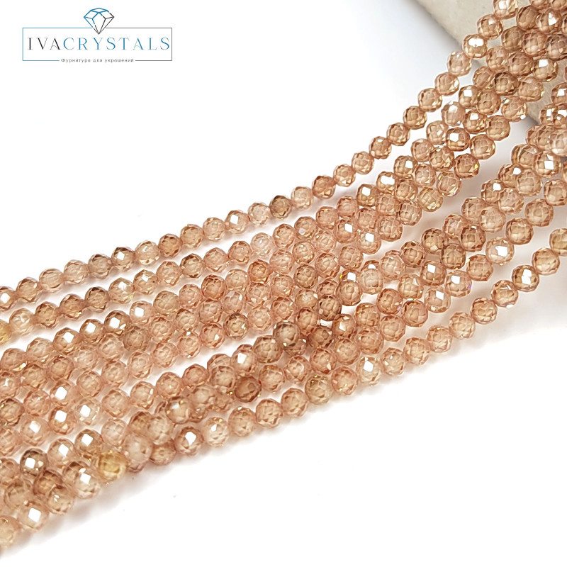 Цирконы огранка 3 мм Бежевый насыщенный, НИТЬ 38 см