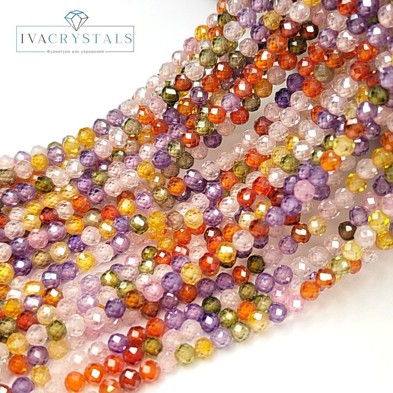 Купить Циркон огранка 3 мм Микс, НИТЬ 38 см вы можете в компании iva_crystals, оформив заказ в интернет магазине, или