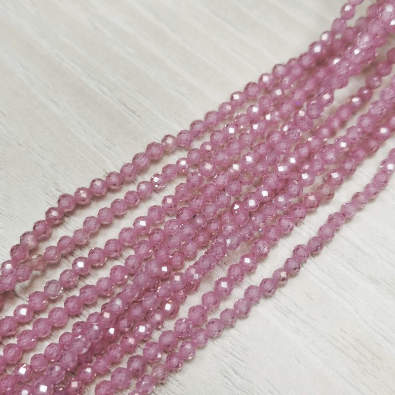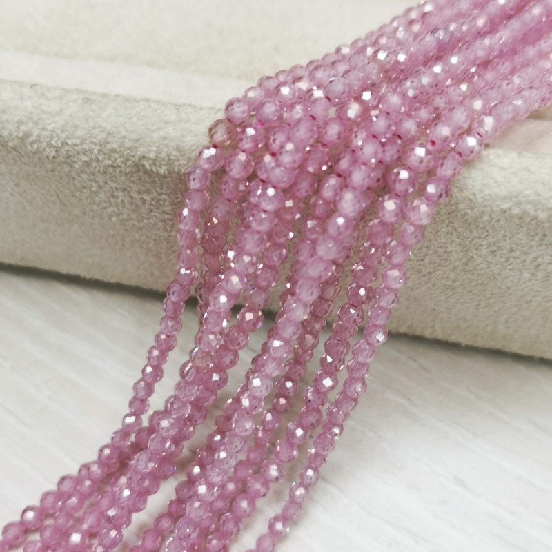 Циркон огранка 3 мм Розовый, НИТЬ 38 см копия №1765464605