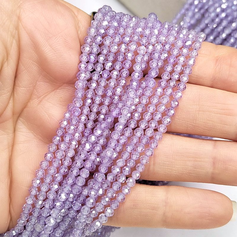 Циркон огранка 3 мм Сиреневый, НИТЬ 38 см